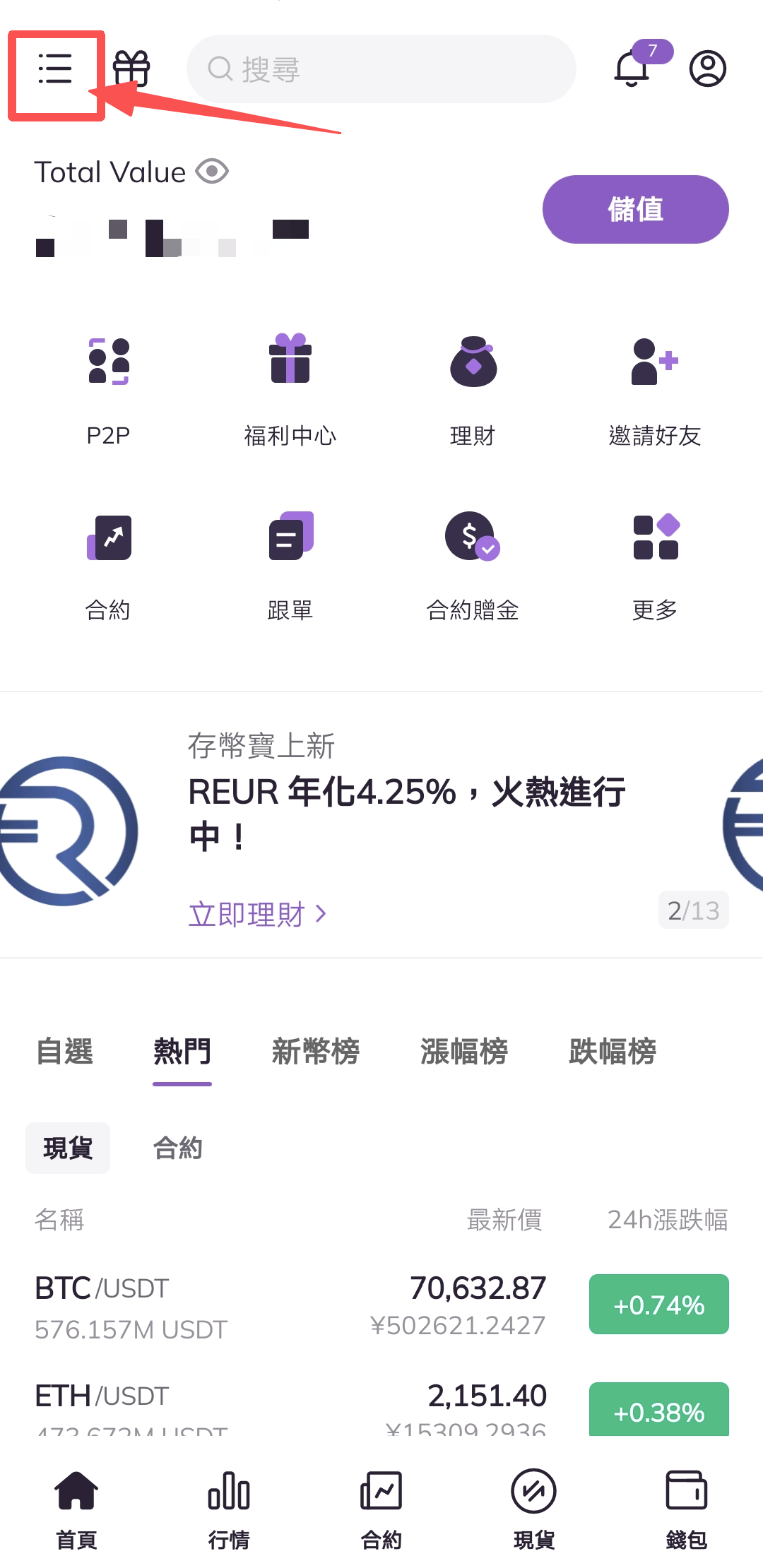 刷新1.打開AscendEX APP,點選左上角選單欄。