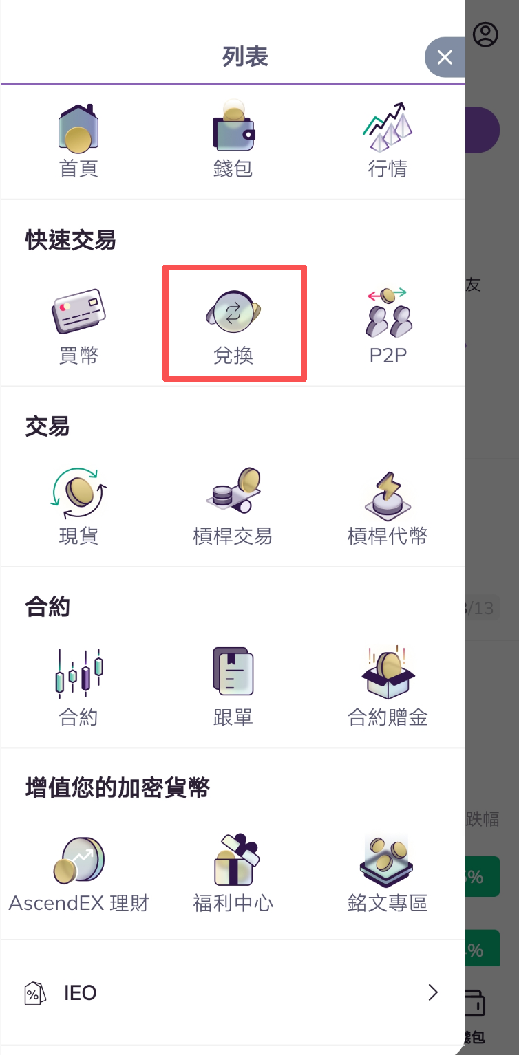 1.打開AscendEX APP,點選左上角選單欄。