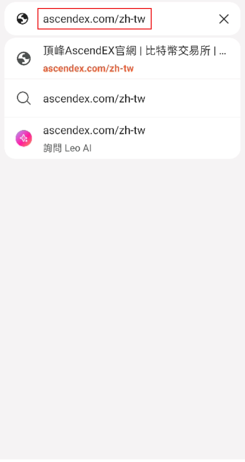 1.首先在遊覽器搜尋AscendEX 進入AscendEX官方網站。 (ascendex.com/zh-tw) 或 (asdcnweb.net/zh-tw)